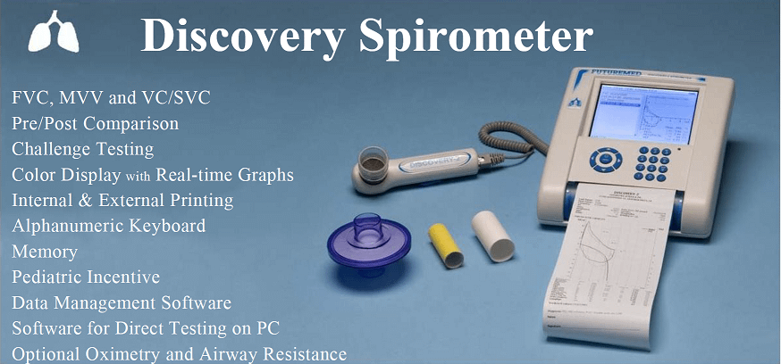 Discovery phế dung kế là một thiết bị nhỏ gọn, Phế dung kế với khả năng chẩn đoán phổ biến để dụng cụ lớn hơn. Hơn 25 năm kinh nghiệm trong việc phục vụ nhu cầu của cộng đồng y tế có Futuremed của đầy đủ nhất phế dung kế, kết hợp mới nhấtcông nghệ, các ngành công nghiệp mới nhất tiêu chuẩn, và “danh sách mong muốn” và đề nghị được cung cấp bởi hàng ngàn khách hàng hiện tại.