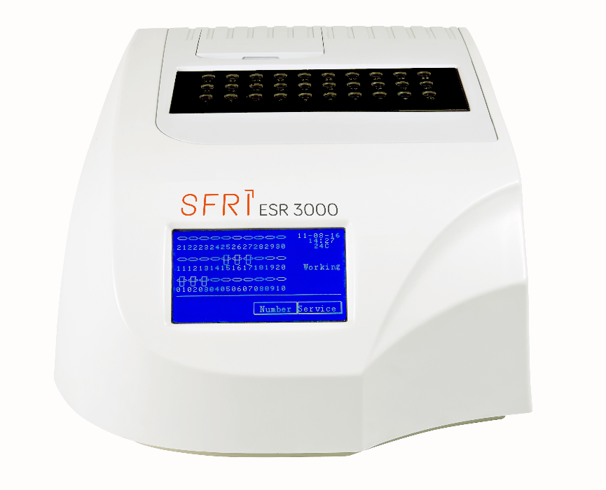 SFRI ESR 3000 là máy phân tích Tốc độ lắng hồng cầu tự động có khả năng thực hiện phân tích tốc độ máu lắng được tiêu chuẩn hóa tuân theo phương pháp Westergen đã sửa đổi. Xét nghiệm tốc độ lắng máu cho phép theo dõi tình trạng viêm, nhiễm trùng trong cơ thể.