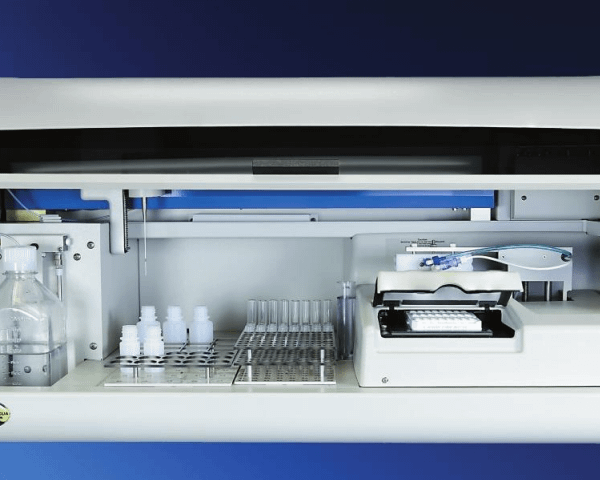 Máy xét nghiệm miễn dịch tự động là một loại máy xét nghiệm có khả năng tự động hoàn toàn các quy trình từ lấy mẫu, trộn với hóa chất, phân tích kết quả và in kết quả. Máy xét nghiệm tự động có công suất cao, chính xác cao và hiệu quả cao so với các loại máy xét nghiệm bán tự động.